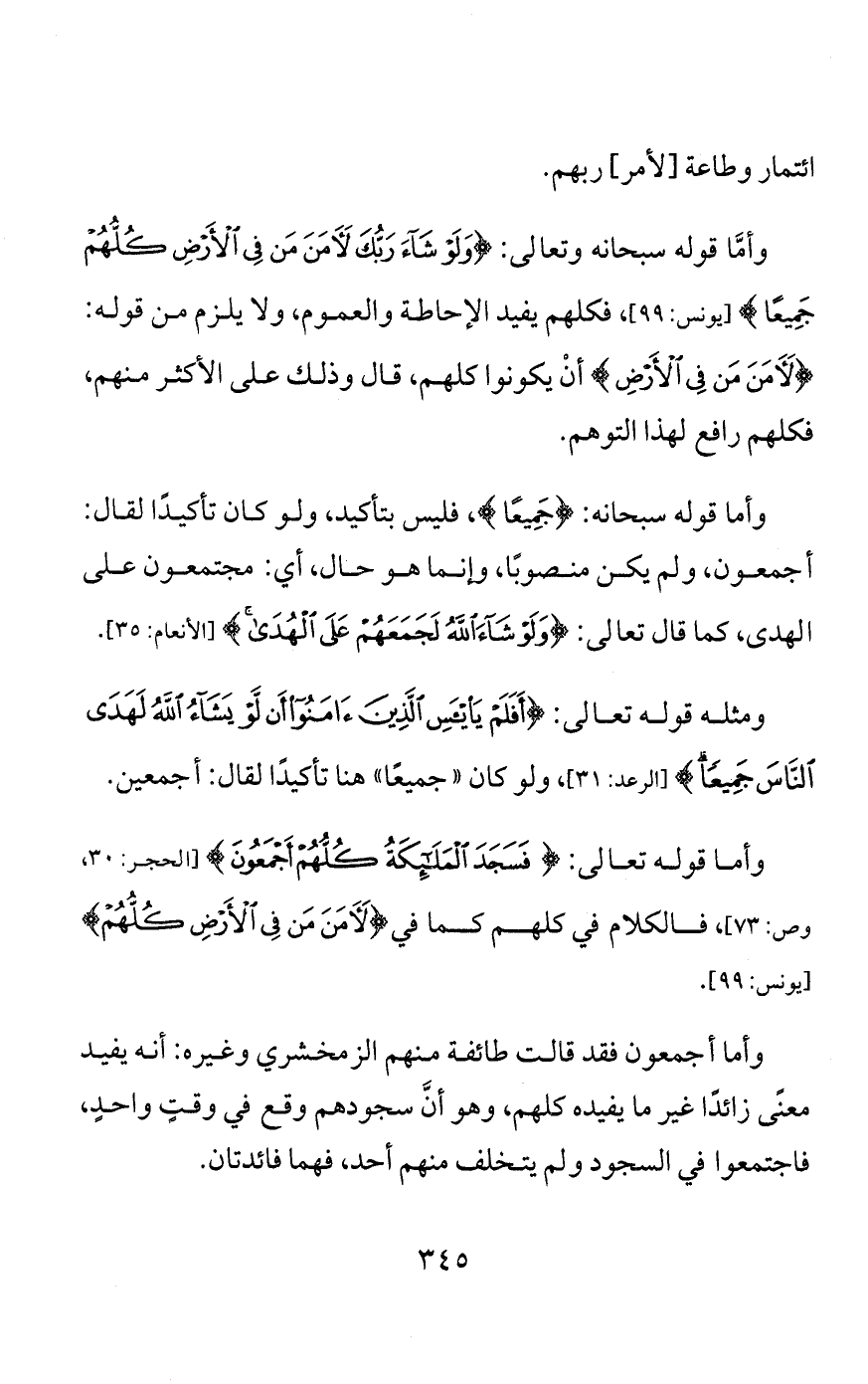 وهذا لا يفهم من قوله سبحانه: {دُكَّتِ الْأَرْضُ دَكًّا}، فقوله: {دَكًّا دَكًّا} فيه قدر زائد على مجرد الدكّ، وكذلك قوله تعالى: {صَفًّا صَفًّا}، ليس للتأكيد إذ المراد صفًّا بعد صفٍّ، أي: صفًّا يتلوه صفٌّ، وهو لا يفهم من قوله تعالى: {وَجَاءَ رَبُّكَ وَالْمَلَكُ صَفًّا}؛ لاحتمال أنْ يكونوا