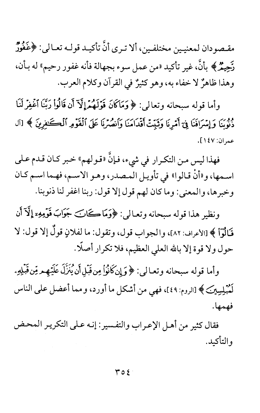 ونظير هذا قوله سبحانه وتعالى: {أَلَمْ يَعْلَمُوا أَنَّهُ مَنْ يُحَادِدِ اللَّهَ وَرَسُولَهُ فَأَنَّ لَهُ نَارَ جَهَنَّمَ خَالِدًا فِيهَا} [التوبة:63]، لما طال الكلام أعاد أنَّ، هذا قول الزجاج وطائفة.
