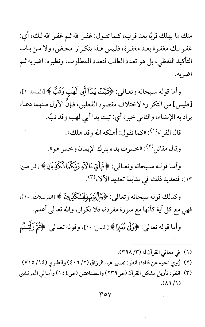 إحداهما: قوله: إنه من باب التكرير.