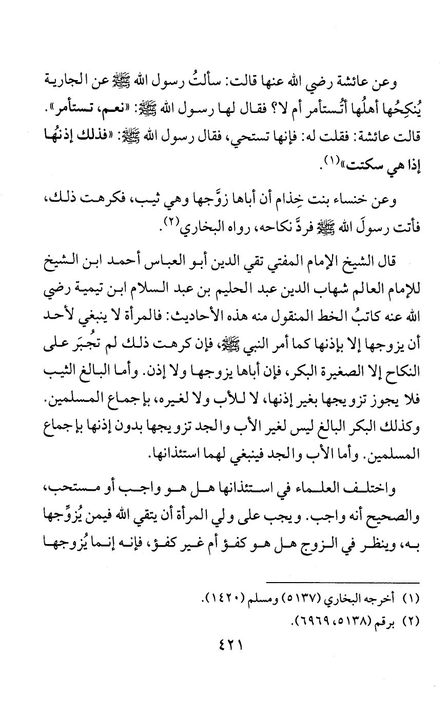 ولهذا أجمع المسلمون على أن الولي لا يجوز له عضلُ المرأة إذا طلبت النكاح من كفؤ، وأنها لا يُجبِرها مَن سوى الأب والجد إذا كان لها إذن، وفي الأب والجد تفصيل ليس هذا موضعه.