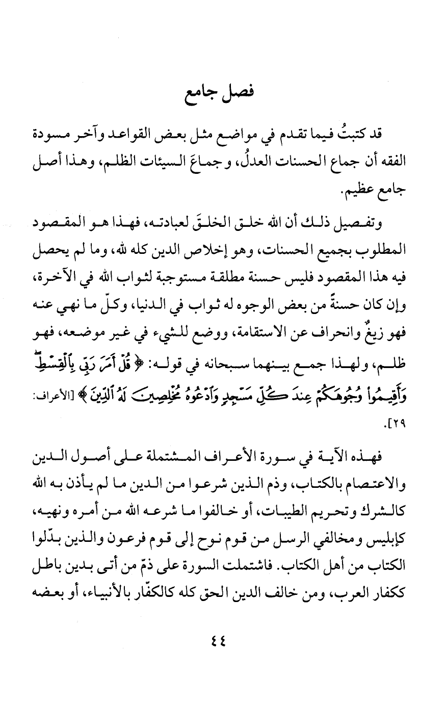 قاعدة: بعث الله محمدًا بالهدى ودين الحق ليُظهِره على الدين كله، وكفى بالله شهيدًا، إلى جميعِ الخلق: أهل العلم والعبادة، وأهل الولاية والإمارة من الخاصة، وأكمَلَ له ولأمته الدينَ، وأتمَّ عليهم النعمةَ، ورضي لهم الإسلامَ دينًا. فالهدى يدخل فيه العلم النافع، ودين الحق يدخل فيه العمل الصالح، فعاش السلف في ذلك الهدى ودين الحق. ثم ظهرت البدع والفجور، فصار من الأمة من استمسك بالهدى ودين الحق، ومنهم من عَدلَ عن بعض ذلك، فاستمتعوا بخَلاقِهم كما استمتع الذي من قبلهم بخَلاقهم، وخاضوا كالذي خاضوا.