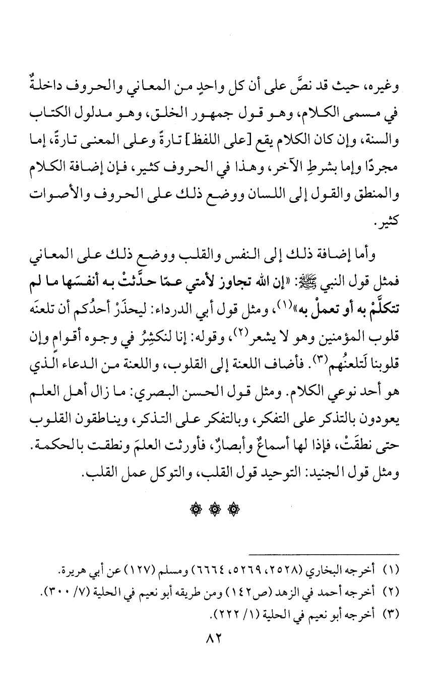في سبيل الله مثل الصائم القائم القانت الذي لا يَفتُر في صلاة ولا صيام». وقال له رجل: أخبرني بعملٍ يَعْدِلُ الجهادَ في سبيل الله، قال: «لا تستطيع»، قال: أخبِرْني به، قال: «هل تستطيع إذا خرج المجاهدُ أن تصومَ لا تُفطِر وتقومَ لا تَفتُر؟» قال: لا، قال: «فذلك الذي يَعدِلُ الجهادَ في سبيل الله». إلى أمثال هذه النصوص.