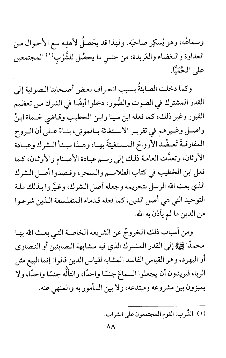 وهذا الإنحراف إنما وقع في النصارى من الصابئة الفلاسفة الذين هم أئمة صناعة الصوت التي يسمونها الموسيقى، دخل بسبب هذا القدر المشترك بينهم وبين الصائبة قومٌ من الصابئة في اسم التصوف ونحوه، وقرروا الانحرافات الصابئية. قال الشافعي رضي الله عنه: خلَّفتُ ببغداد شيئًا أحدثته الزنادقة يسمونه التغبير، يَصدُّون به الناسَ عن القرآن. فإن إحداث التغبير إنما هو من المتفلسفة الزنادقة، ولهذا قال أبو عبد الرحمن السلمي في «مسألة السماع» عن ابن الراوندي أنه قال: اختلفَ الفقهاءُ في السماع هل هو حلال أو حرام؟ وأنا أقول: هو واجب. وهذا قول الزنادقة كما ذكره الشافعي.