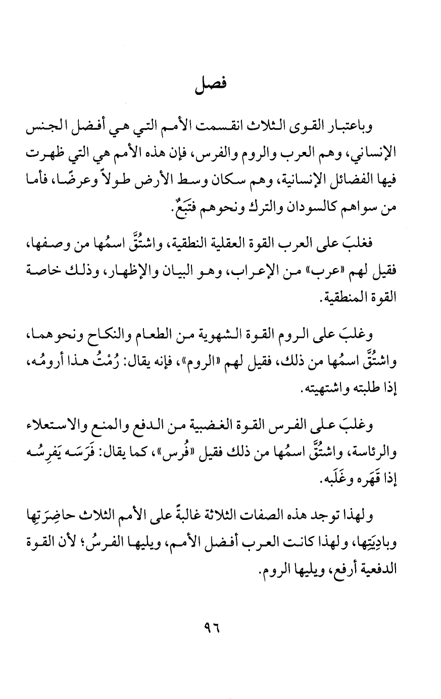 فيقال: لأنها هي تحفظ الفطرةَ وتمنع فسادها، واحتاج العبد إلى رعايتها، لأن المحبة الفطرية لا تحتاج إلى تحريك. ولهذا كان أعظم ما دعت إليه الرسلُ الإخلاص والنهي عن الإشراك، لأن الإقرار الفطري حاصل، لوجود مقتضيه، وإنما يحتاج إلى إخلاصه ودفْعِ الشرك عنه. ولهذا كانت حاجة الناس إلى السياسة الدافعة لظلم بعضهم عن بعضٍ، والجالبةِ لمنفعة بعضهم بعضًا، كما أوجبَ الله الزكاة النافعة وحرَّم الربا الضارَّ.