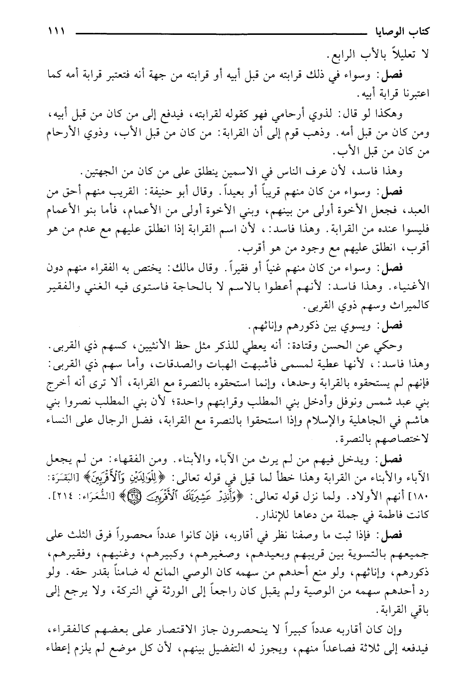 فصل: ويدخل فيهم من لم يرث من الآباء والأبناء. ومن الفقهاء: من لم يجعل الآباء والأبناء من القرابة وهذا خطأ لما قيل في قوله تعالى: {لِلْوَالِدَيْنِ والأَقْرَبِينَ (214)} [الشعراء: 214]. كانت فاطمة في جملة من دعاها للإنذار.