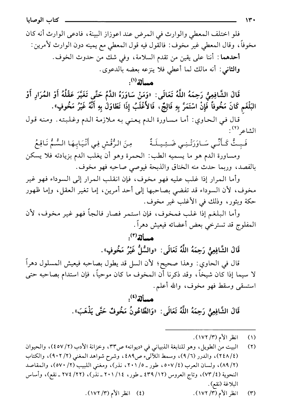 قال الشافعي رحمه الله تعالى: «ومن ساوره الدم حتى تغير عقله أو المرار أو البلغم كان مخوفًا فإن استمر به فالج فالأغلب إذا تطاول به أنه غير مخوف».