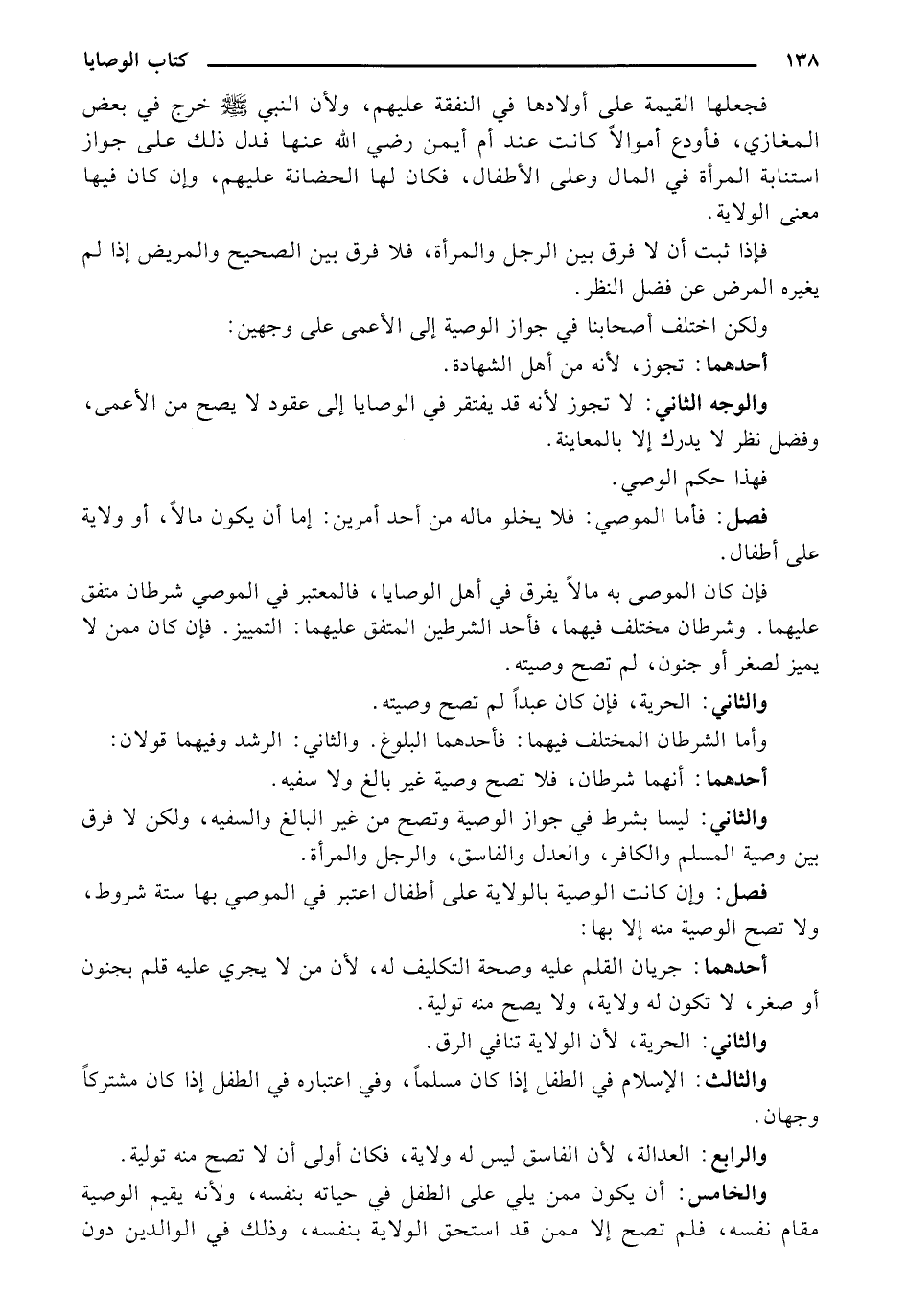 فصل: وإن كانت الوصية بالولاية على أطفال اعتبر في الموصي بها ستة شروط، ولا تصح الوصية منه إلا بها:
