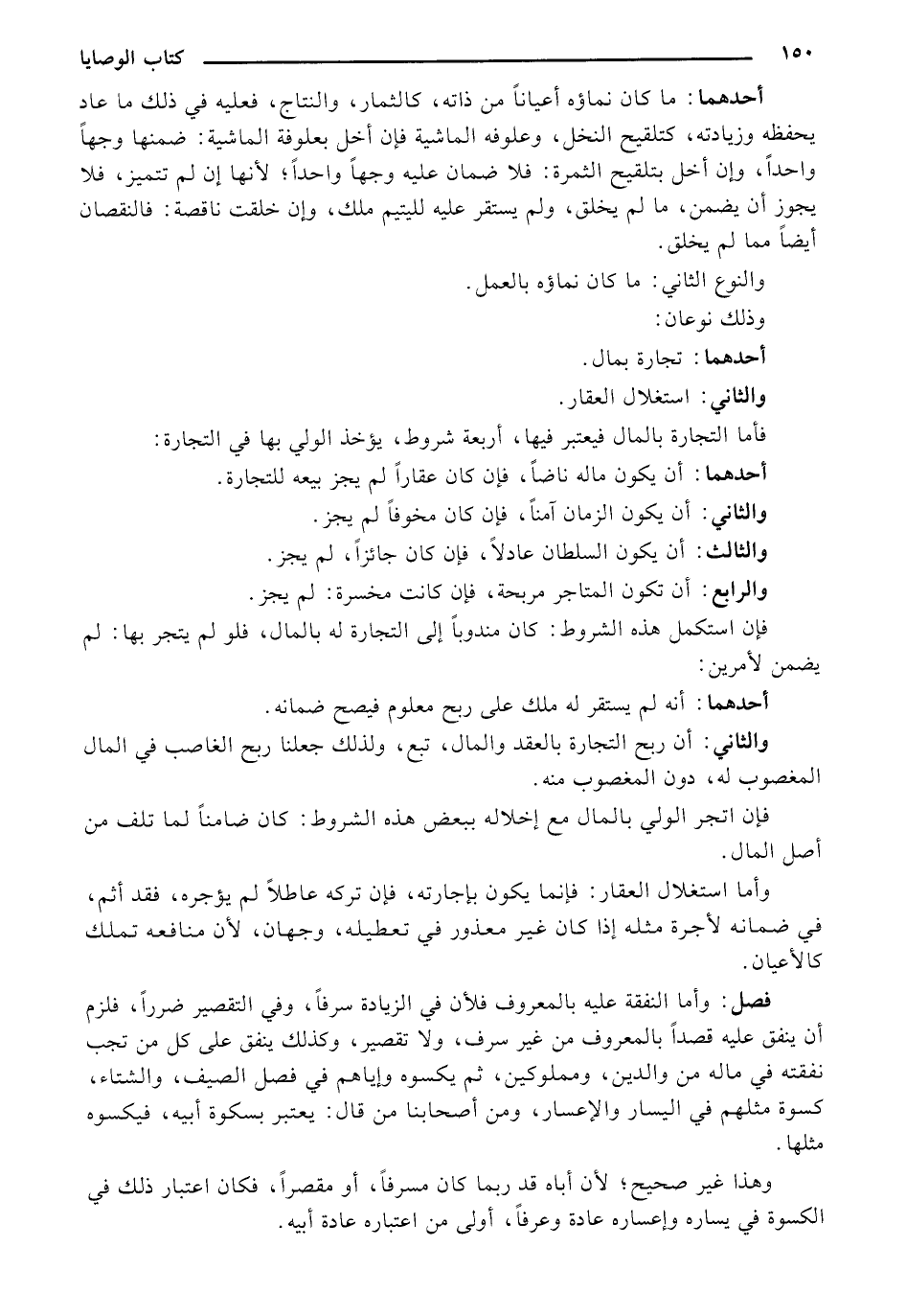 فأما التجارة بالمال فيعتبر فيها، أربعة شروط، يؤخذ الولي بها في التجارة: