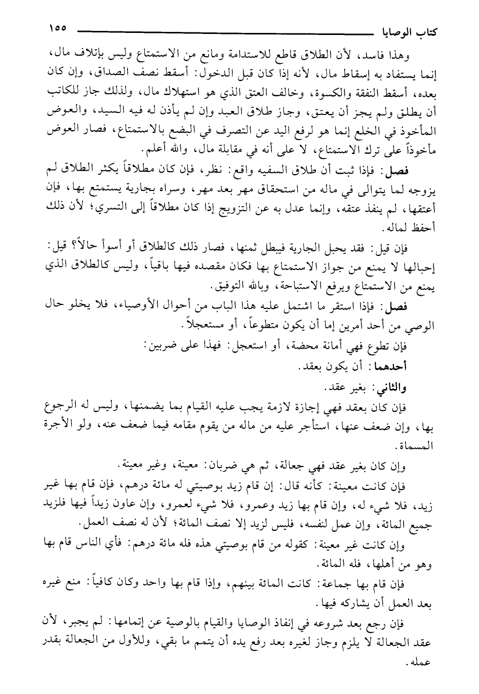 فصل: فإذا استقر ما اشتمل عليه هذا الباب من أحوال الأوصياء، فلا يخلو حال الوصي من أحد أمرين إما أن يكون متطوعًا، أو مستعجلًا.