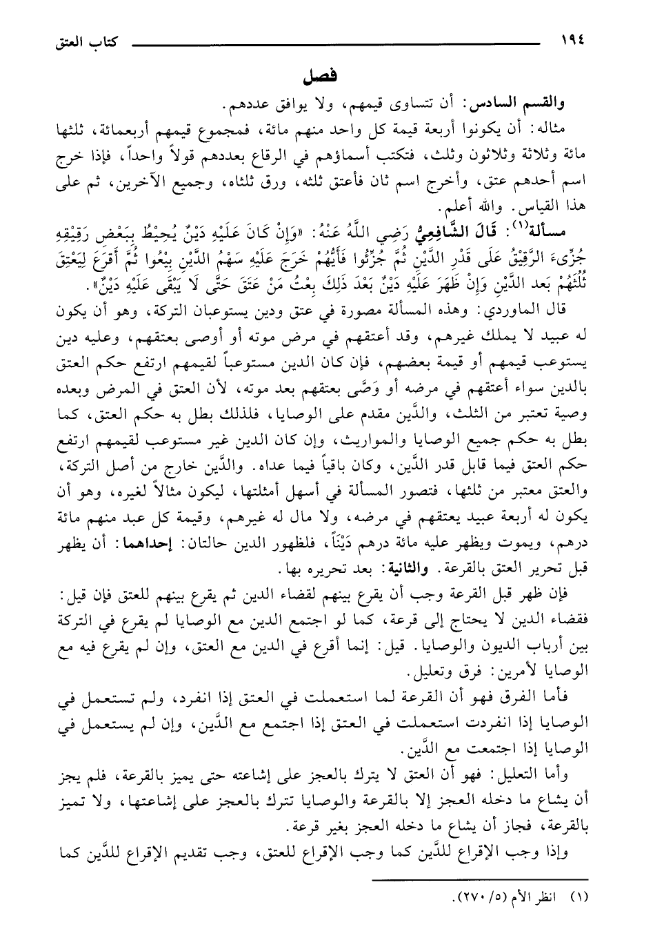قال الماوردي: وهذه المسالة مصورة في عتق ودين يستوعبان التركة، وهو أن يكون له عبيد لا يملك غيرهم، وقد أعتقهم في مرض موته أو أوصي بعتقهم، وعليه دين يستوعب قيمهم أو قيمة بعضهم، فإن كان الدين مستوعبًا لقيمهم ارتفع حكم العتق بالدين سواء أعتقهم في مرضه أو وصي بعتقهم بعد موته، لأن العتق في المرض وبعده وصية تعتبر من الثلث، والدين مقدم على الوصايا، فلذلك بطل به حكم العتق، كما بطل به حكم جميع الوصايا والمواريث، وإن كان الدين غير مستوعب لقيمهم ارتفع حكم العتق فيما قابل قدر الدين، وكان باقيًا فيما عداه. والدين خارج من أصل التركة، والعتق معتبر من ثلثها، فتصور المسألة في أسهل أمثلتها، ليكون مثالًا لغيره، وهو أن يكون له أربعة عبيد يعتقهم في مرضه، ولا مال له غيرهم، وقيمة كل عبد منهم مائة درهم، ويموت ويظهر عليه مائة درهم دينًا فلظهور الدين حالتان: إحداهما: أن يظهر قبل تحرير العتق بالقرعة. والثانية: بعد تحريره بها.