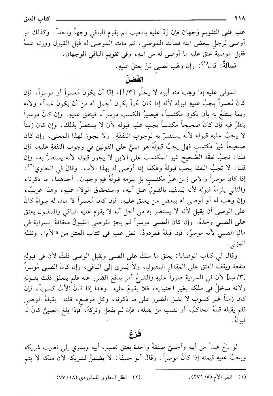 المولى عليه إذا وهب منه أبوه لا يخلو [3/ أ]، إما أن يكون معسرا أو موسرا، فإن كان معسرا يجب عليه قبوله لأنه إذا كان حرا يكون أجمل له من أن يكون عبدا، ولأنه ربما ينتفع به بأن يكون مكتسبا، فيصير الكسب موسرا، فينفق عليه. وإن كان موسرا ينظر فيه فإن كان صحيحا مكتسبا يجب عليه قبوله لأن لا يستضر بذلك، وإن كان زمنا لا يجب عليه قبوله لأنه يستضر به لوجوب النفقة. ولا يجوز لهذا المعنى، وإن كان صحيحا غير مكتسب فهل يجب قبوله هو مبني على القولين في وجوب النفقة عليه، فإن قلنا: تجب نفقة الصحيح غير المكتسب على الابن لا يجوز قبوله لأنه يستضر به، وإن قلنا: لا تجب النفقة يجب قبوله وهكذا إذا أوصى له بهذا الأب. وقال في الحاوي: إذا كان موسرا والابن زمن غير مكتسب بل يلزمه قبوله فيه وجهان: أحدهما، ما ذكرنا، والثاني يلزمه قبوله لأنه يستفيد بالقبول عتق أبيه، واستحقاق الولاء عليه، وهذا غريب، وإن وهب له أو أوصى له ببعض من يعتق عليه، فإن كان معسرا لا مال له سواه كان على الوصي أن يقبل لأنه لا يستضر به من أجل أنه لا يقوم عليه الباقي والمقبول يعتق على الصبي وحده. وإن كان الصبي موسرا لم يجز للوصي القبول مخافة السراية في مال الصبي لأنه موسر، فإن قبله مردود. نص عليه في كتاب العتق من «الأم»، ونقله المزني.
