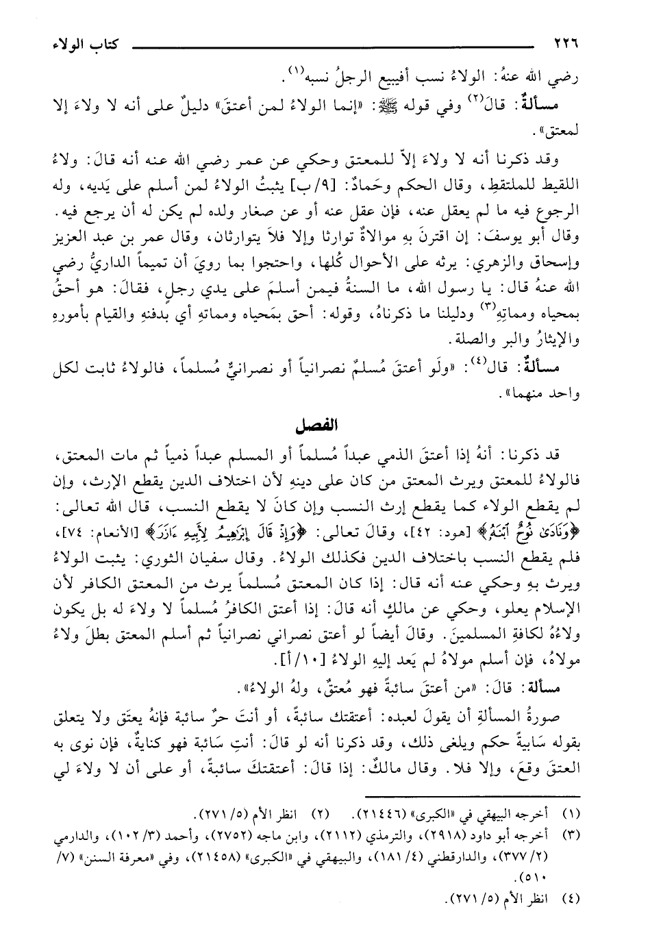 رضي الله عنه: الولاء نسب أفيبيع الرجل نسبه.