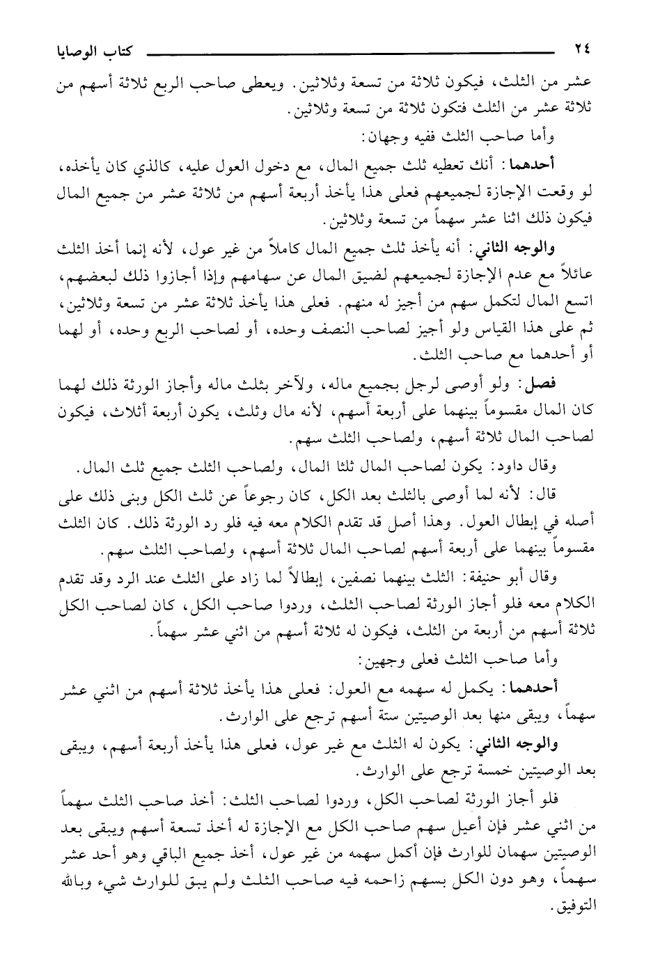 عشر من الثلث، فيكون ثلاثة من تسعة وثلاثين. ويعطي صاحب الربع ثلاثة أسهم من ثلاثة عشر من الثلث فتكون ثلاثة من تسعة وثلاثين.