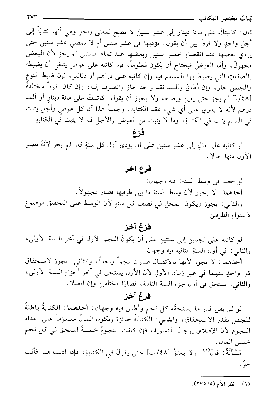 لو لم يقل قدر ما يستحقه كل نجم وأطلق فيه وجهان: أحدهما: الكتابة باطلة للجهل بقدر الاستحقاق، والثاني: الكتابة جائزة ويكون المال مقسوما على أعداد النجوم لأن الإطلاق يوجب التسوية، فإن كانت النجوم خمسة استحق في كل نجم خمس المال.