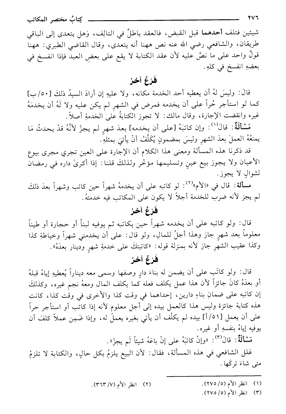 مسألة: قال في «الأم»: لو كاتبه على أن يخدمه شهرًا حين كاتب وشهرًا بعد ذلك لم يجز لأنه ضرب للخدمة أجًلا لا يكون على المكاتب فيه خدمته.