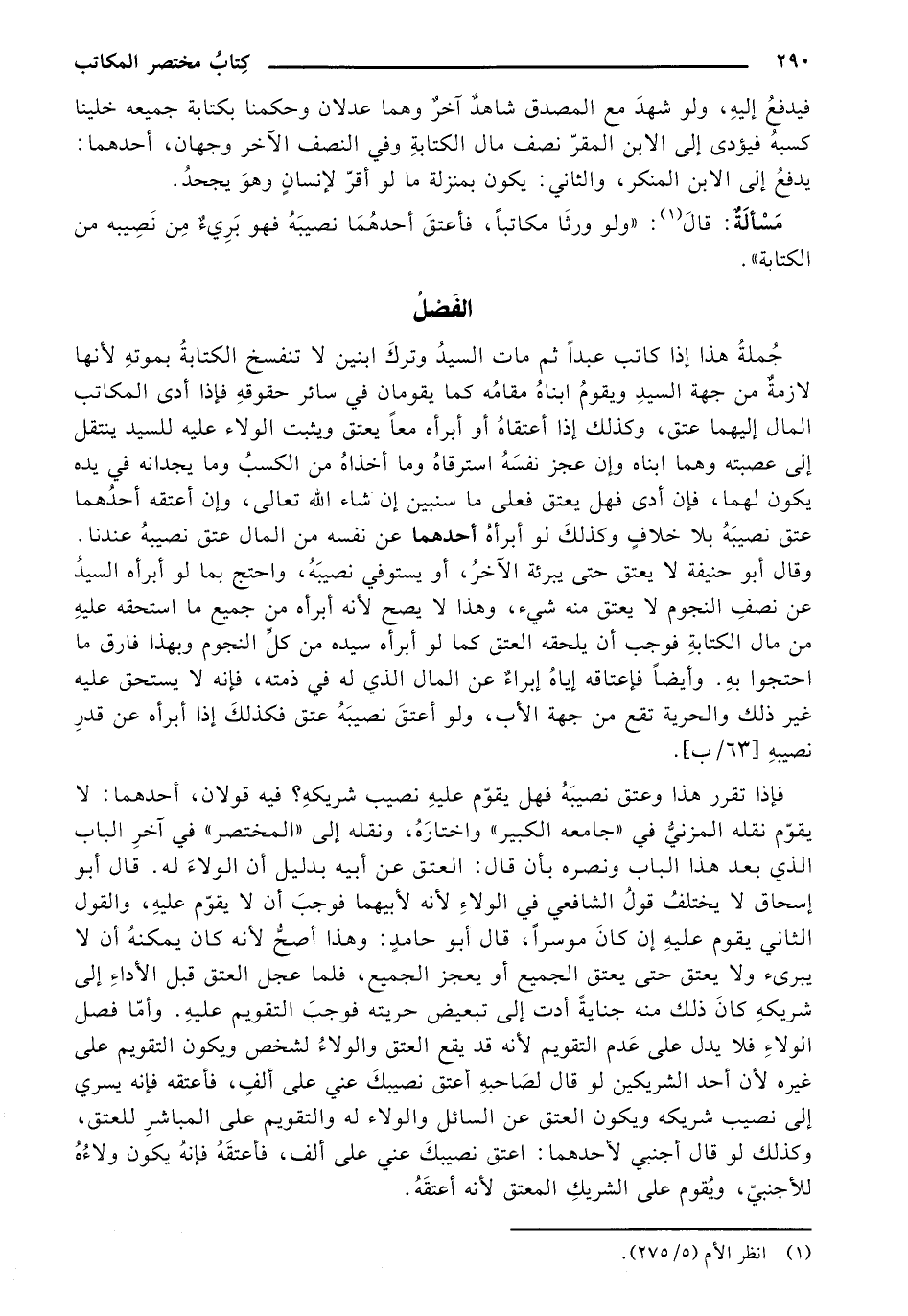 جملة هذا إذا كاتب عبدًا ثم مات السيد وترك ابنين لا تنفسخ الكتابة بموته لأنها لازمة من جهة السيد ويقوم ابناه مقامه كما يقومان في سائر حقوقه فإذا أدى المكاتب المال إليهما عتق، وكذلك إذا أعتقاه أو أبرأه معًا يعتق ويثبت الولاء عليه للسيد ينتقل إلى عصبته وهما ابناه وإن عجز نفسه استرقاه وما أخذاه من الكسب وما يجدانه في يده يكون لهما، فإن أدى فهل يعتق فعلى ما سنبين إن شاء الله تعالى، وإن أعتقه أحدهما عتق نصيبه بلا خلاف وكذلك لو أبرأه أحدهما عن نفسه من المال عتق نصيبه عندنا. وقال أبو حنيفة لا يعتق حتى يبرئة الآخر، أو يستوفي نصيبه، واحتج بما لو أبرأه السيد عن نصف النجوم لا يعتق منه شيء، وهذا لا يصح لأنه أبرأه من جميع ما استحقه عليه من مال الكتابة فوجب أن يلحقه العتق كما لو أبرأه سيده من كل النجوم وبهذا فارق ما احتجوا به. وأيضًا فإعتاقه إياه إبراء عن المال الذي له في ذمته، فإنه لا يستحق عليه غير ذلك والحرية تقع من جهة الأب، ولو أعتق نصيبه عتق فكذلك إذا أبرأه عن قدر نصيبه [63 /ب].