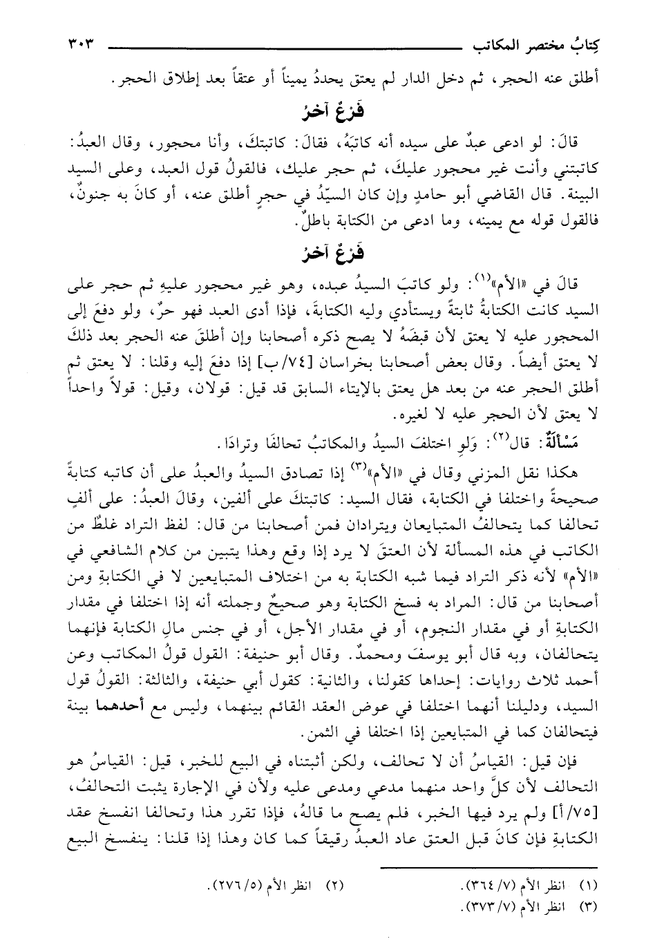 هكذا نقل المزني وقال في «الأم» إذا تصادق السيد والعبد على أن كاتبه كتابة صحيحة واختلفا في الكتابة، فقال السيد: كاتبتك على ألفين، وقال العبد: على ألف تحالفا كما يتحالف المتبايعان ويترادان فمن أصحابنا من قال: لفظ التراد غلط من الكاتب في هذه المسألة لأن العتق لا يرد إذا وقع وهذا يتبين من كلام الشافعي في «الأم» لأنه ذكر التراد فيما شبه الكتابة به من اختلاف المتبايعين لا في الكتابة ومن أصحابنا من قال: المراد به فسخ الكتابة وهو صحيح وجملته أنه إذا اختلفا في مقدار الكتابة أو في مقدار النجوم، أو في مقدار الأجل، أو في جنس مال الكتابة فإنهما يتحالفان، وبه قال أبو يوسف ومحمد. وقال أبو حنيفة: القول قول المكاتب وعن أحمد ثلاث روايات: إحداها كقولنا، والثانية: كقول أبي حنيفة، والثالثة: القول قول السيد، ودليلنا أنهما اختلفا في عوض العقد القائم بينهما، وليس مع أحدهما بينة فيتحالفان كما في المتبايعين إذا اختلفا في الثمن.