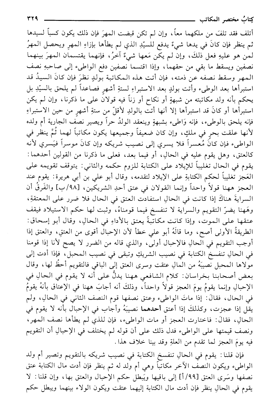 أتلف فقد تلف من ملكهما معًا، وإن لم تكن قبضت المهر فإن ذلك يكون كسبًا ليسدها ثم ينظر فإن كان في يدها شيء يدفع للسيد الذي لم يطأها بإزاء المهر ويحصل المهر لمن هو عليه فعل ذلك، وإن لم يكن معها شيء آخر، فإنهما يقتسمان المهر بينهما نصفين ويسقط ما بقي من حقهما، وإذا اقتسما نصفين دفع الواطئ إلى صاحبه نصف المهر وسقط نصفه عن ذمته، فإن أتت هذه المكاتبة بولد نظر فإن كان السيد قد استبرأها بعد الوطئ وأتت بولد بعد الاستبراء لستة أشهر فصاعدًا لم يلحق بالسيد بل يحكم بأنه ولد مكاتبته من شبهة أو نكاح أو زنًا فيه قولان على ما ذكرنا، وإن لم يكن استبرأها أو كان قد استبرأها إلا أنها أتت بالولد لأقل من ستة أشهر من حين الاستبراء فإنه يلحق بالوطئ، فإنه واطئ بشبهة وينعقد الولد حرًا ويصير نصف الجارية أم ولده لأنها علقت بحر في ملك، وإن كان ضعيفًا وجميعها يكون مكاتبًا لهما ثم ينظر في الواطئ فإن كان معسرًا فلا يسري إلى نصيب شريكه وإن كان موسرًا فيسري لأنه كالعتق، وهل يقوم عليه في الحال، أو فيما بعد، فعلى ما ذكرنا من القولين أحدهما: يقوم في الحال تغليبًا للإيلاد على الكتابة للزوم حكمه والثاني: يتوقف تقويمه على العجز تغليبًا لحكم الكتابة على الإيلاد لتقدمه، وقال أبو علي بن أبي هريرة: يقوم عند العجز ههنا قولاً واحدًا وإنما القولان في عتق أحد الشريكين، [98/ ب] والفرق أن السراية هناك إذا كانت في الحال استفادة العتق في الحال فلا ضرر على المعتقة، وههنا يضر التقويم والسراية لا تنفسخ فيما قومناه، وثبت لها حكم الاستيلاد فيقف عتقها على الموت، وإذا كانت مكاتبة يعتق بالأداء في الحال، وقال أبو إسحاق: الطريقة الأولى أصح، وما قاله أبو علي خطأ لأن الإحبال أقوى من العتق، والعتق إذا أوجب التقويم في الحال فالإحبال أولى، والذي قاله من الضرر لا يصح لأنا إذا قومنا في الحال تنفسخ الكتابة في نصيب الشريك وتبقى في نصيب المحبل، فإذا أدت إلى مولاها المحبل نصيبه من المال عتقت وسرى العتق إلى الباقي فالتقويم أحظُ لها، وقال بعض أصحابنا بخراسان: كلام الشافعي ههناه يدل على أنه لا يقوم في الحال في الإحبال وإنما يقوم يوم العجز قولاً واحدًا، وذلك أنه أجاب ههنا في الإعتاق بأنه يقوم في الحال، فقال: إذا مات الواطئ وعتق نصفها قوم النصف الثاني في الحال، ولم يقل إذا عجزت، وكذلك إذا أعتق أحدهما نصيبه وأجاب في الإحبال بأنه لا يقوم فيه الحال، فقال: فاختارت العجز أو مات الواطئ، فإن للذي لم يطأها نصف المهر، ونصف قيمتها على الواطئ فدل ذلك على أن قوله لم يختلف في الإحبال أن التقويم فيه يوم العجز لما تقدم من العلة وقد بينا خلاف هذا.