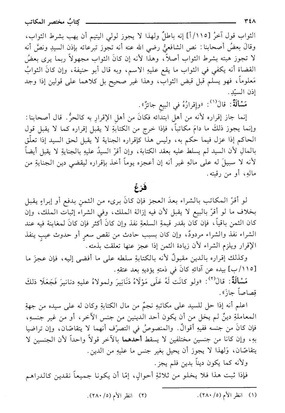 لو أقر المكاتب بالشراء بعد العجز فإن كان برئ من الثمن بدفع أو إبراء يقبل بخلاف ما لو أقر بالبيع لا يقبل لأن فيه إزالة الملك، وفي الشراء إثبات الملك، وإن كان الثمن باقيًا فإن كان بقدر قيمة السلعة ن فذ وإن كان أكثر فإن كان لمغابنة فيه عند الشراء نفذ والشراء مردود، وإن كان بسبب حادث من نقص سعر أو حدوث عيب ينفذ الإقرار يلزم الشراء لأن زيادة الثمن إذا عجز عنها تعلقت بذمته.