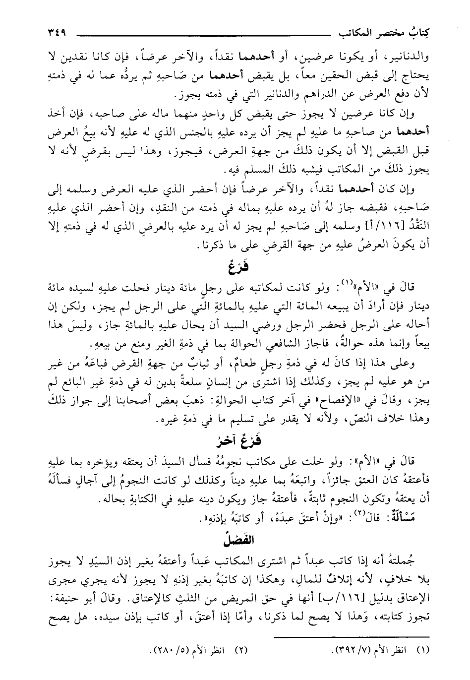 وإن كان عرضين لا يجوز حتى يقبض كل واحد منهما ماله على صاحبه، فإن أخذ أحدهما من صاحبه ما عليه لم يجز أن يرده عليه بالجنس الذي له عليه لأنه بيع العرض قبل القبض إلا أنه يكون ذلك من جهة العرض، فيجوز، وهذا ليس بقرض لأنه لا يجوز ذلك من المكاتب فيشبه ذلك المسلم فيه.