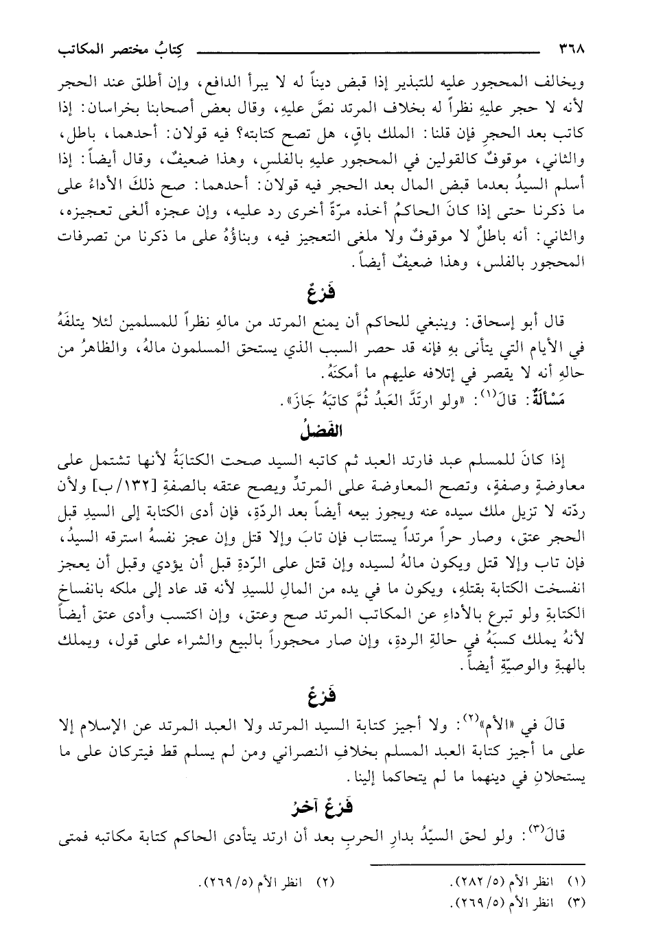 ويخالف المحجور عليه للتبذير إذا قبض دينًا له لا يبرأ الدافع، وإن أطلق عند الحجر لأنه لا حجر عليه نظرًا له بخلاف المرتد نص عليه، وقال بعض أصحابنا بخراسان: إذا كاتب بعد الحجر فإن قلنا: الملك باق، هل تصح كتابته؟ فيه قولان: أحدهما، باطل، والثاني، موقوف كالقولين في المحجور عليه بالفلس، وهذا ضعيف، وقال أيضًا: إذا أسلم السيد بعدما قبض المال بعد الحجر فيه قولان: أحدهما: صح ذلك الأداء على ما ذكرنا حتى إذا كان الحاكم أخذه مرة أخرى رد عليه، وإن عجزه ألغى تعجيزه، والثاني: أنه باطل لا موقوف ولا ملغى التعجيز فيه، وبناؤه على ما ذكرنا من تصرفات المحجور بالفلس، وهذا ضعيف أيضًا.