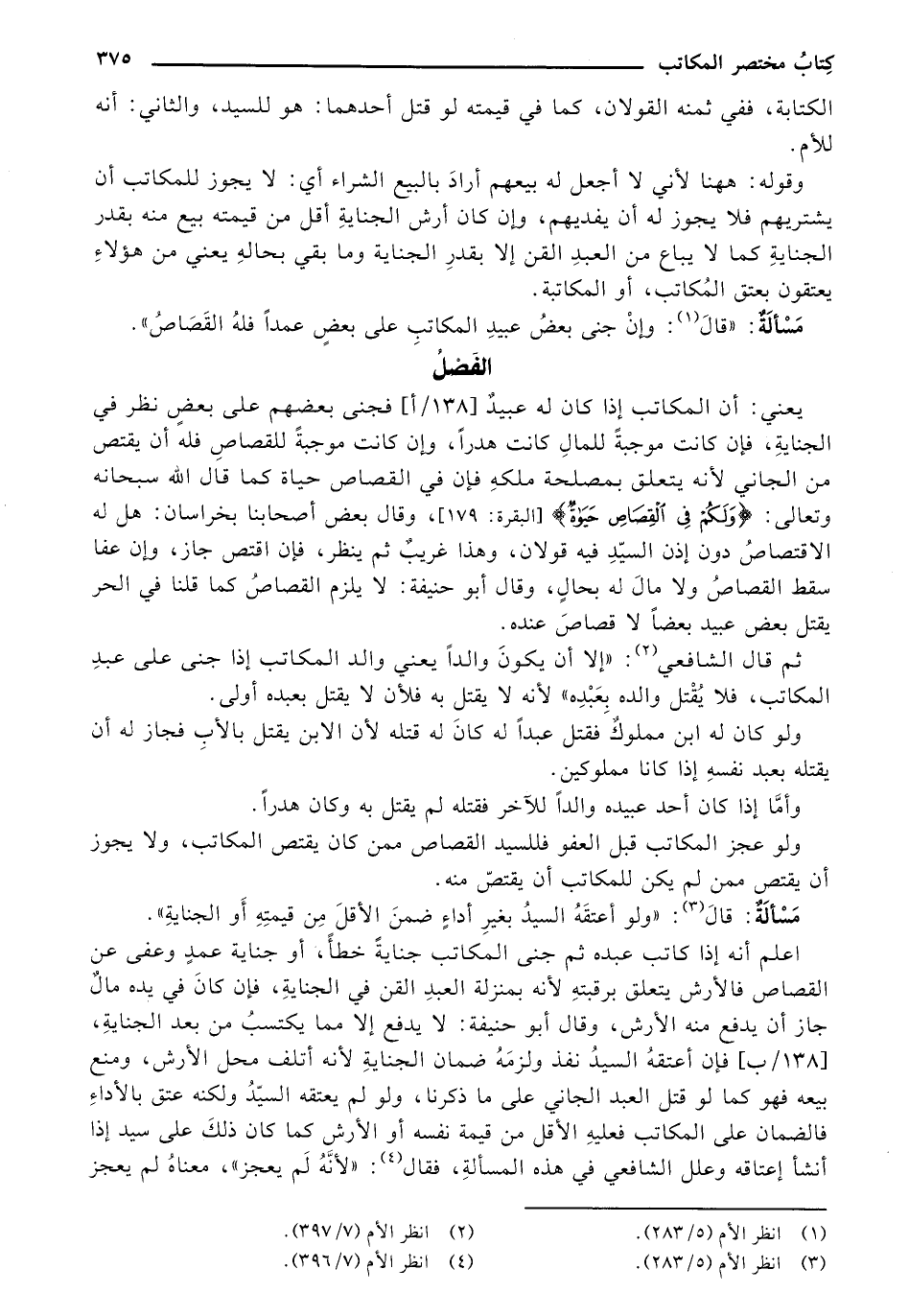 ثم قال الشافعي: «إلا أن يكون والدًا يعني والد المكاتب إذا جني على عبد المكاتب، فلا يقتل والده بعبده» لأنه لا يقتل به فلأن لا يقتل بعبده أولى.