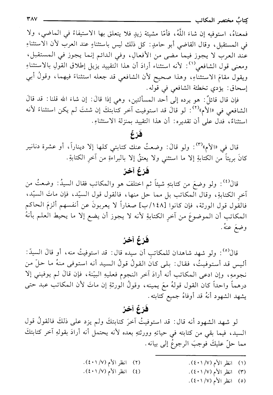 فإن قال قائل: هو يرده إلى أحد المسألتين، وهي إذا قال: إن شاء الله قلنا: قد قال الشافعي في «الأم»: لو قال قد استوفيت آخر كتابتك إن شئت لم يكن استثناء لأنه استثناء، فدل على أن تقديره: أن هذا التقييد بمنزلة الاستثناء.