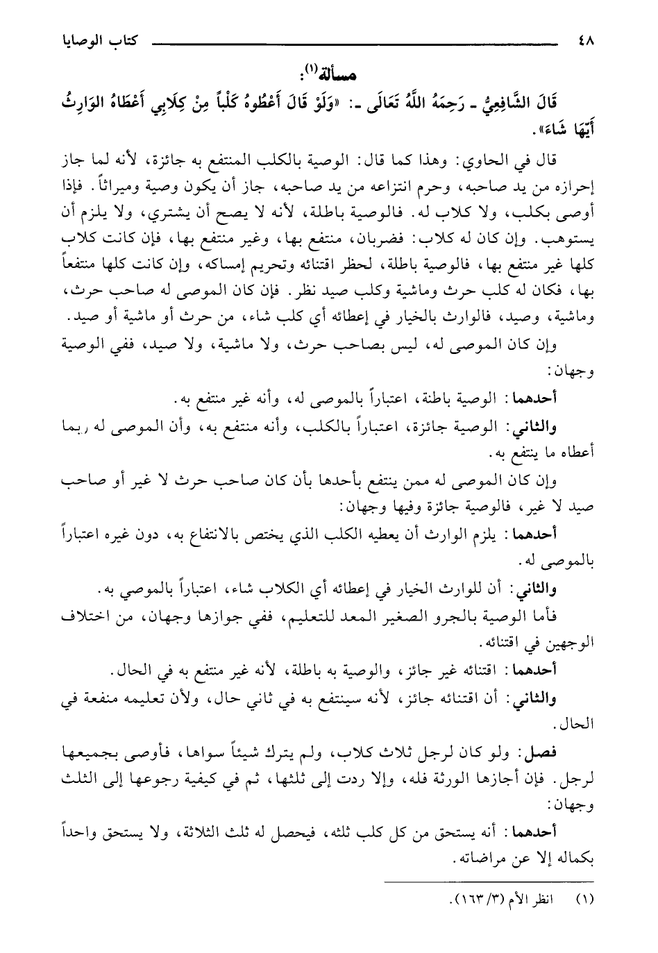 قال الشافعي -رحمه الله تعالى-: «ولو قال أعطوه كلبًا من كلابي أعطاه الوارث أيها شاء».