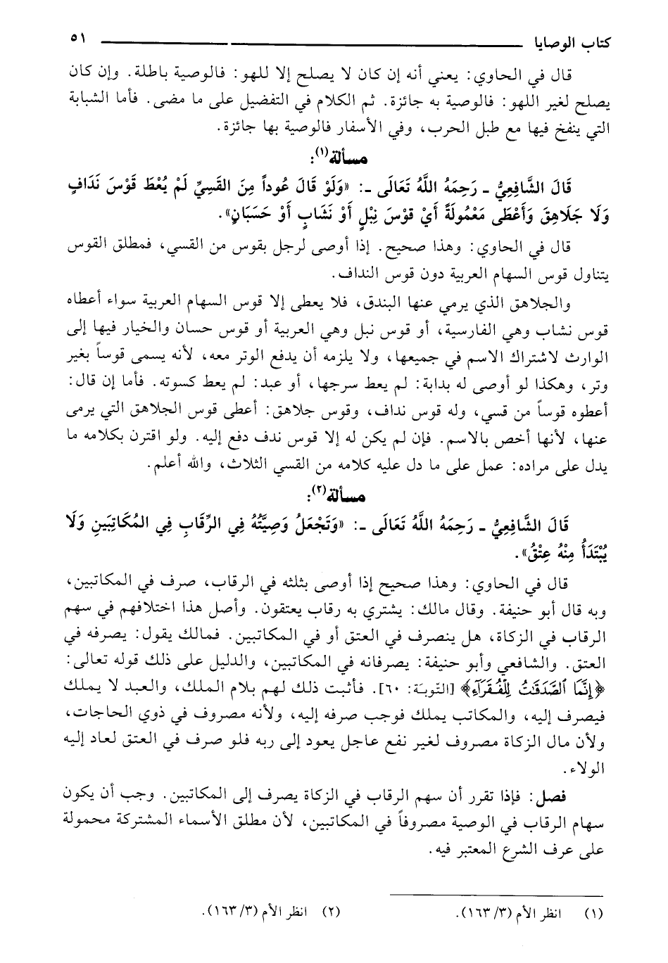 قال الشافعي -رحمه الله تعالى-: «وتجعل وصيته في الرقاب في المكاتبين ولا يبتدأ منه عنق».