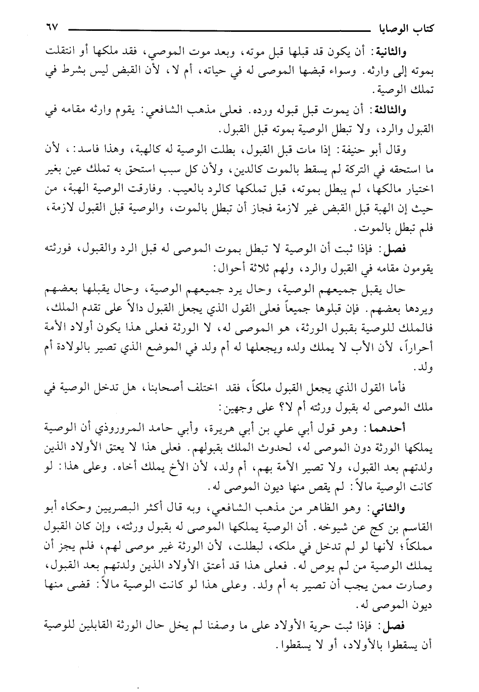 والثاني: وهو الظاهر من مذهب الشافعي، وبه قال أكثر البصريين وحكاه أبو القاسم بن كج عن شيوخه. أن الوصية يملكها الموصي له بقبول ورثته، وإن كان القبول مملكًا؛ لأنها لو لم تدخل في ملكه، لبطلت، لأن الورثة غير موصي لهم، فلم يجز أن يملك الوصية من لم يوص له. فعلي هذا قد أعتق الأولاد الذين ولدتهم بعد القبول، وصارت ممن يجب أن تصير به أم ولد. وعلى هذا لو كانت الوصية مالًا: قضي منها ديون الموصي له.