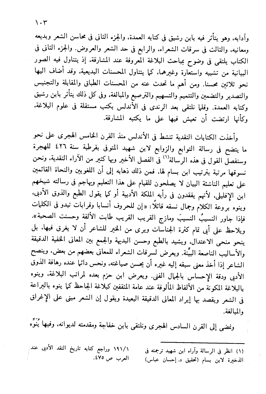 (¬1) انظر فى الرسالة وآراء ابن شهيد ترجمته فى الذخيرة لابن بسام (تحقيق د. إحسان عباس) 1/ 191 وراجع كتابه تاريخ النقد الأدبى عند العرب ص 475.