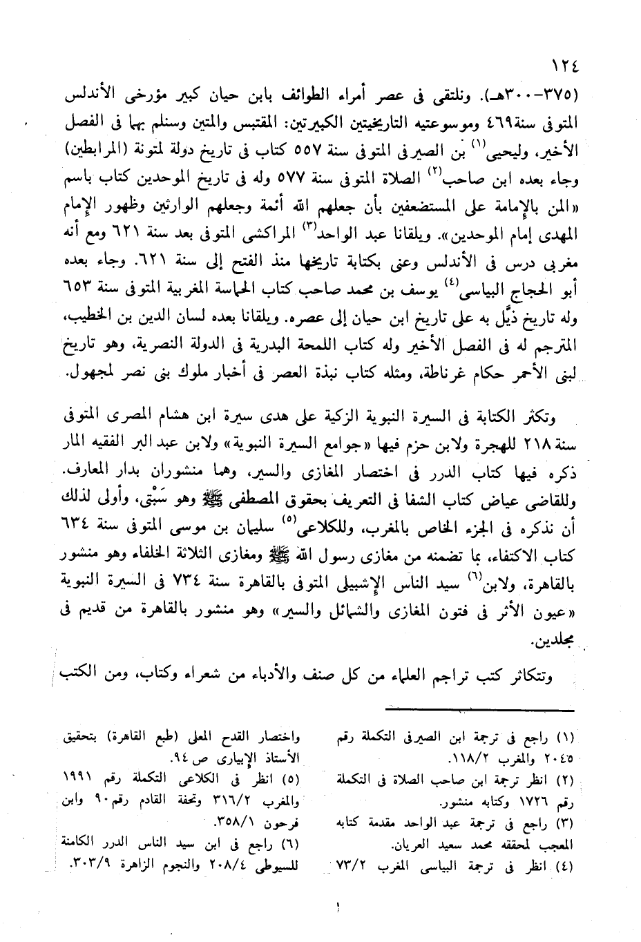 وللقاضى عياض كتاب الشفا فى التعريف بحقوق المصطفى صلّى الله عليه وسلّم وهو سبتى، وأولى لذلك أن نذكره فى الجزء الخاص بالمغرب، وللكلاعى (¬5) سليمان بن موسى المتوفى سنة 634 كتاب الاكتفاء، بما تضمنه من مغازى رسول الله صلّى الله عليه وسلّم ومغازى الثلاثة الخلفاء وهو منشور بالقاهرة، ولابن (¬6) سيد الناس الإشبيلى المتوفى بالقاهرة سنة 734 فى السيرة النبوية «عيون الأثر فى فتون المغازى والشمائل والسير» وهو منشور بالقاهرة من قديم فى مجلدين.