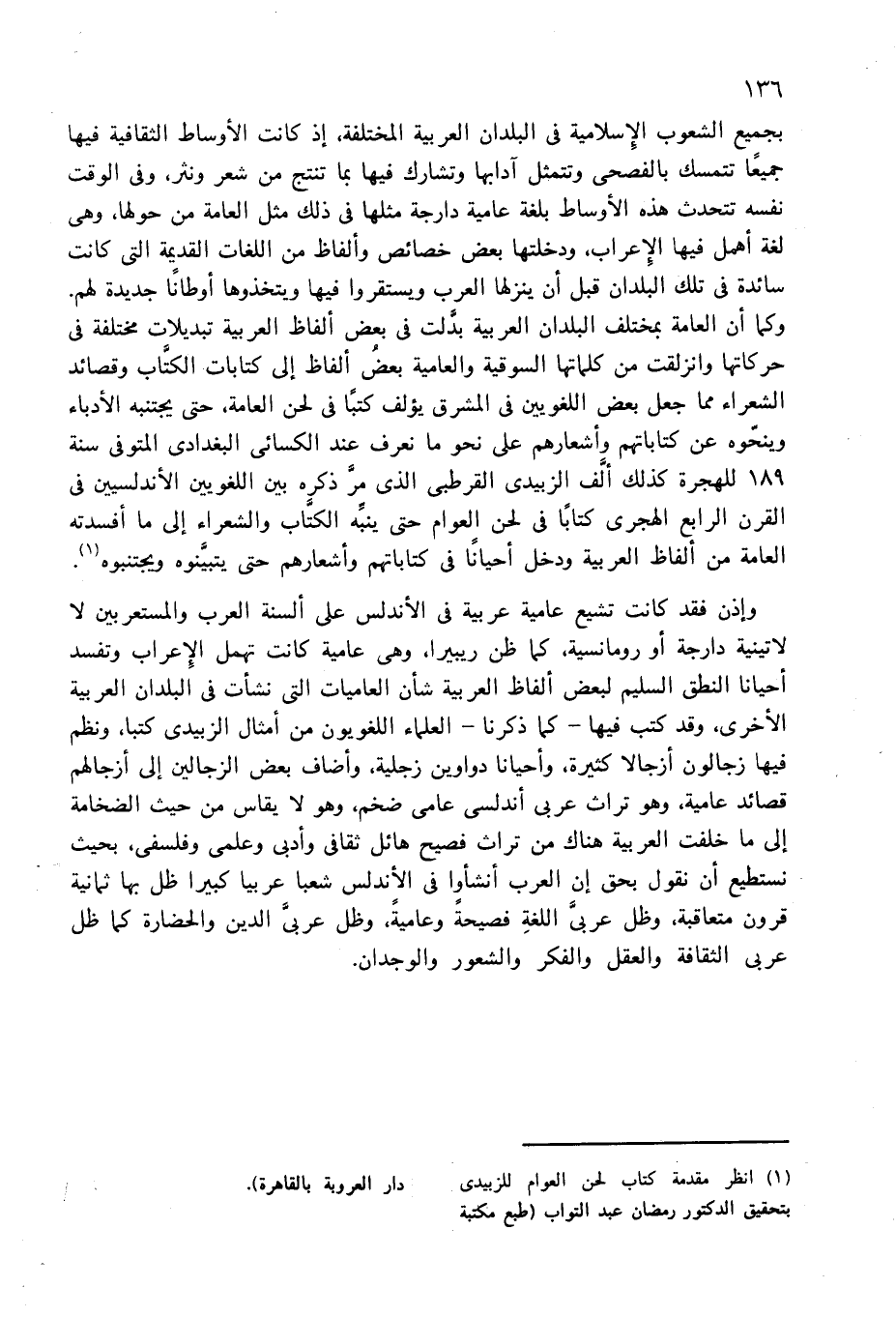 (¬1) انظر مقدمة كتاب لحن العوام للزبيدى بتحقيق الدكتور رمضان عبد التواب (طبع مكتبة دا. العروبة بالقاهرة).