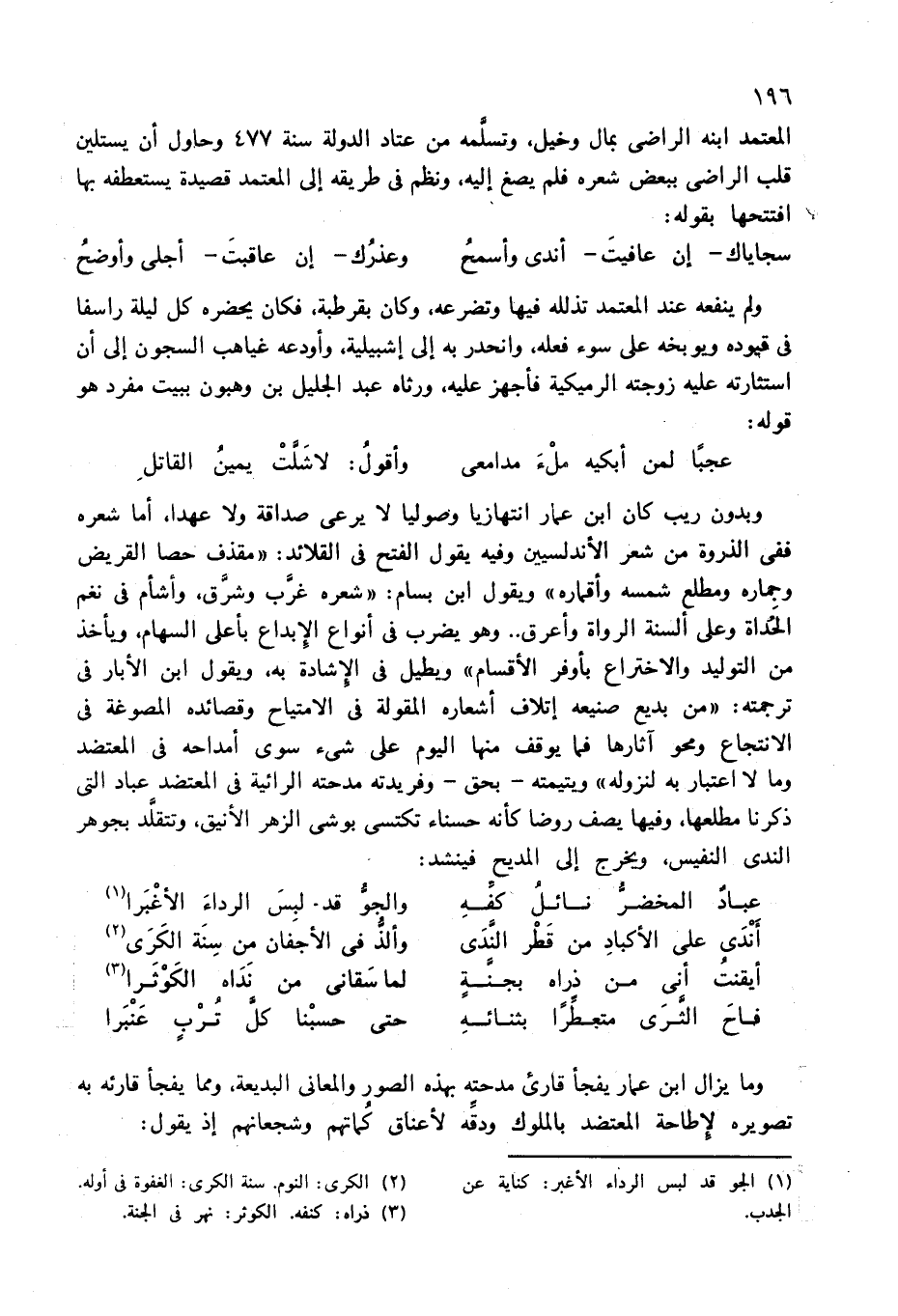 وما يزال ابن عمار يفجأ قارئ مدحته بهذه الصور والمعانى البديعة، ومما يفجأ قارئه به تصويره لإطاحة المعتضد بالملوك ودقّه لأعناق كماتهم وشجعانهم إذ يقول: