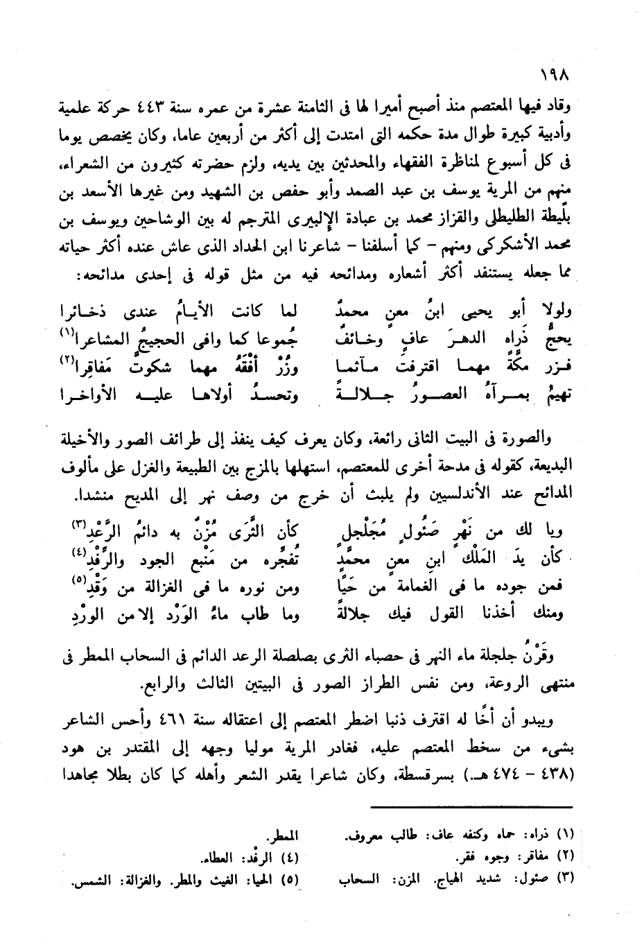 والصورة فى البيت الثانى رائعة، وكان يعرف كيف ينفذ إلى طرائف الصور والأخيلة البديعة، كقوله فى مدحة أخرى للمعتصم، استهلها بالمزج بين الطبيعة والغزل على مألوف المدائح عند الأندلسيين ولم يلبث أن خرج من وصف نهر إلى المديح منشدا.