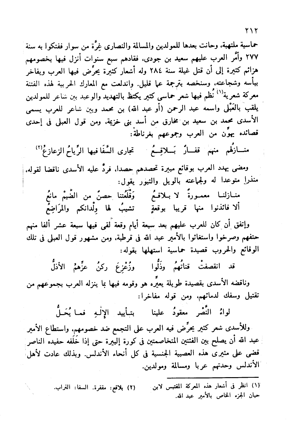 (¬1) انظر فى أشعار هذه المعركة المقتبس لابن حيان الجزء الخاص بالأمير عبد الله.