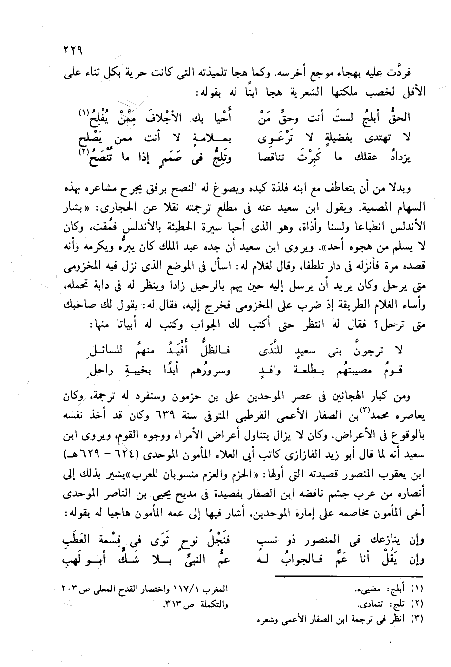 (¬3) انظر فى ترجمة ابن الصفار الأعمى وشعره 1/ 117 واختصار القدح المعلى ص 203 ص 313.