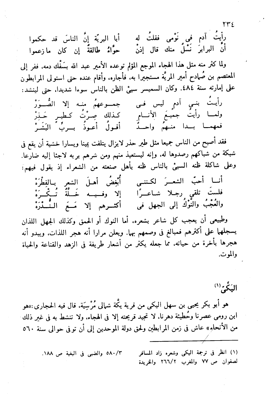 (¬1) انظر فى ترجمة اليكى وشعره زاد المسافر لصفوان ص 77 والمغرب 2/ 266 والخريدة 3/ 580 والضبى فى البغية ص 188.