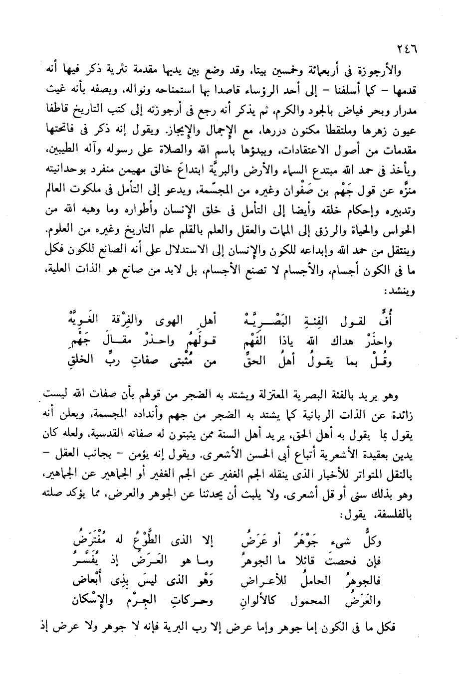 فإن فحصت قائلا ما الجوهر … وما هو العرض إذ يفسّر