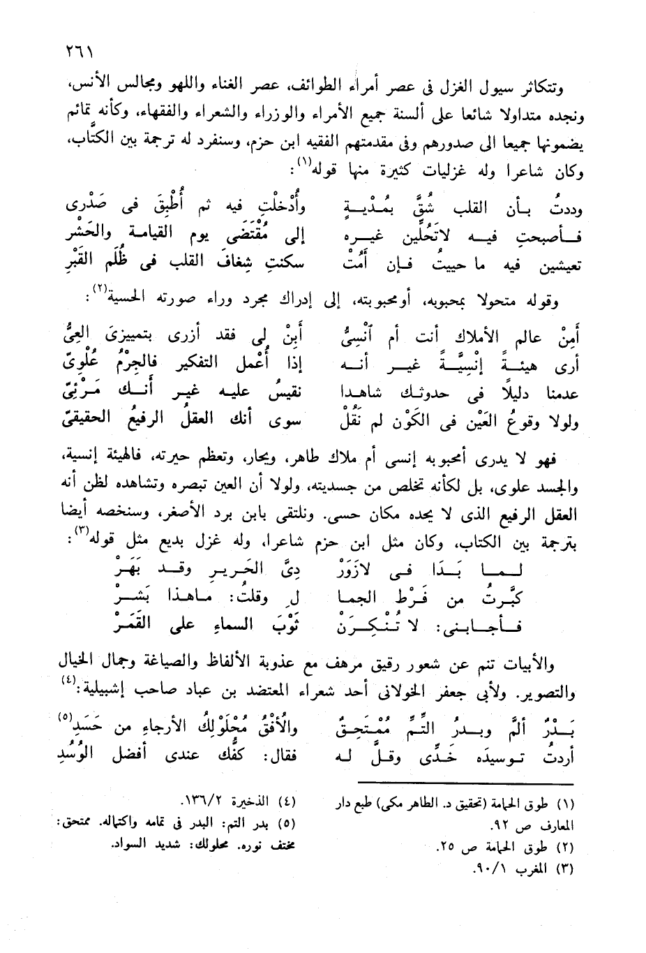 (¬1) طوق الحمامة (تحقيق د. الطاهر مكى) طبع دار المعارف ص 92.