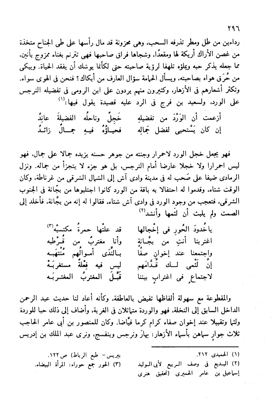 (¬2) البديع فى وصف الربيع لأبى الوليد إسماعيل بن عامر الحميرى (تحقيق هنرى بيريس-طبع الرباط) ص 122.