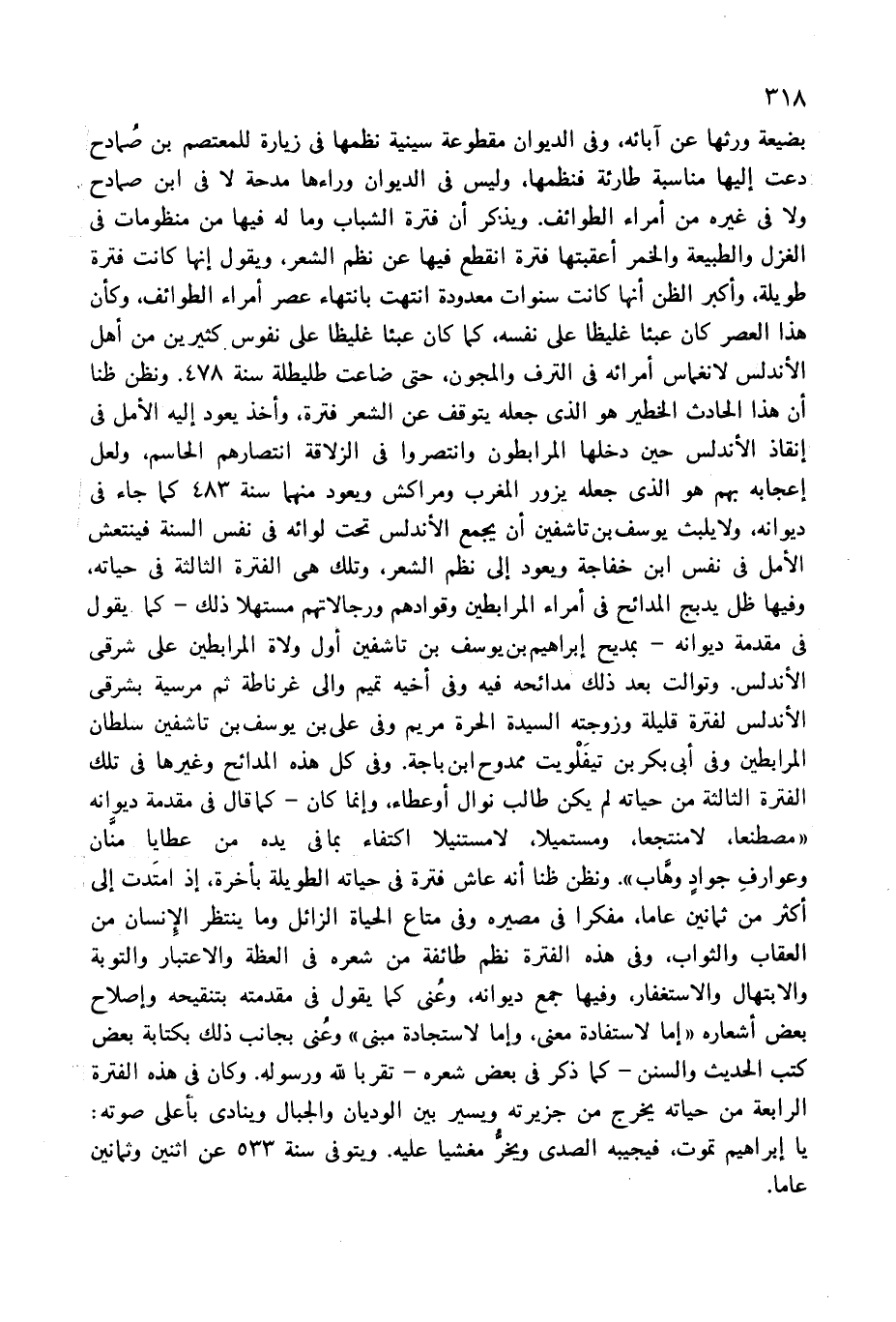 يا إبراهيم تموت، فيجيبه الصدى ويخرّ مغشيا عليه. ويتوفى سنة 533 عن اثنين وثمانين عاما.