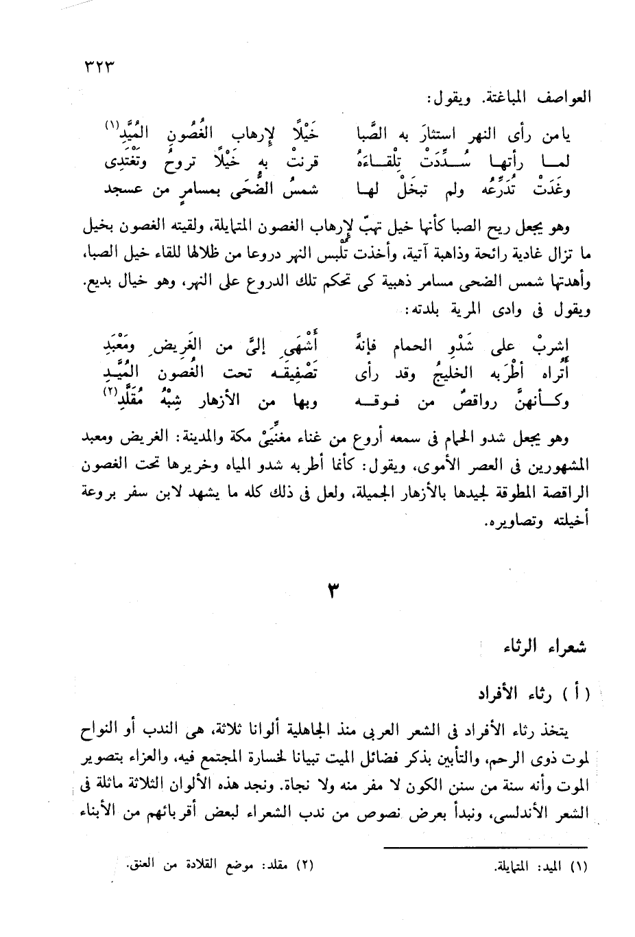 وهو يجعل شدو الحمام فى سمعه أروع من غناء مغنّيى مكة والمدينة: الغريض ومعبد المشهورين فى العصر الأموى، ويقول: كأنما أطربه شدو المياه وخريرها تحت الغصون الراقصة المطوقة لجيدها بالأزهار الجميلة، ولعل فى ذلك كله ما يشهد لابن سفر بروعة أخيلته وتصاويره.