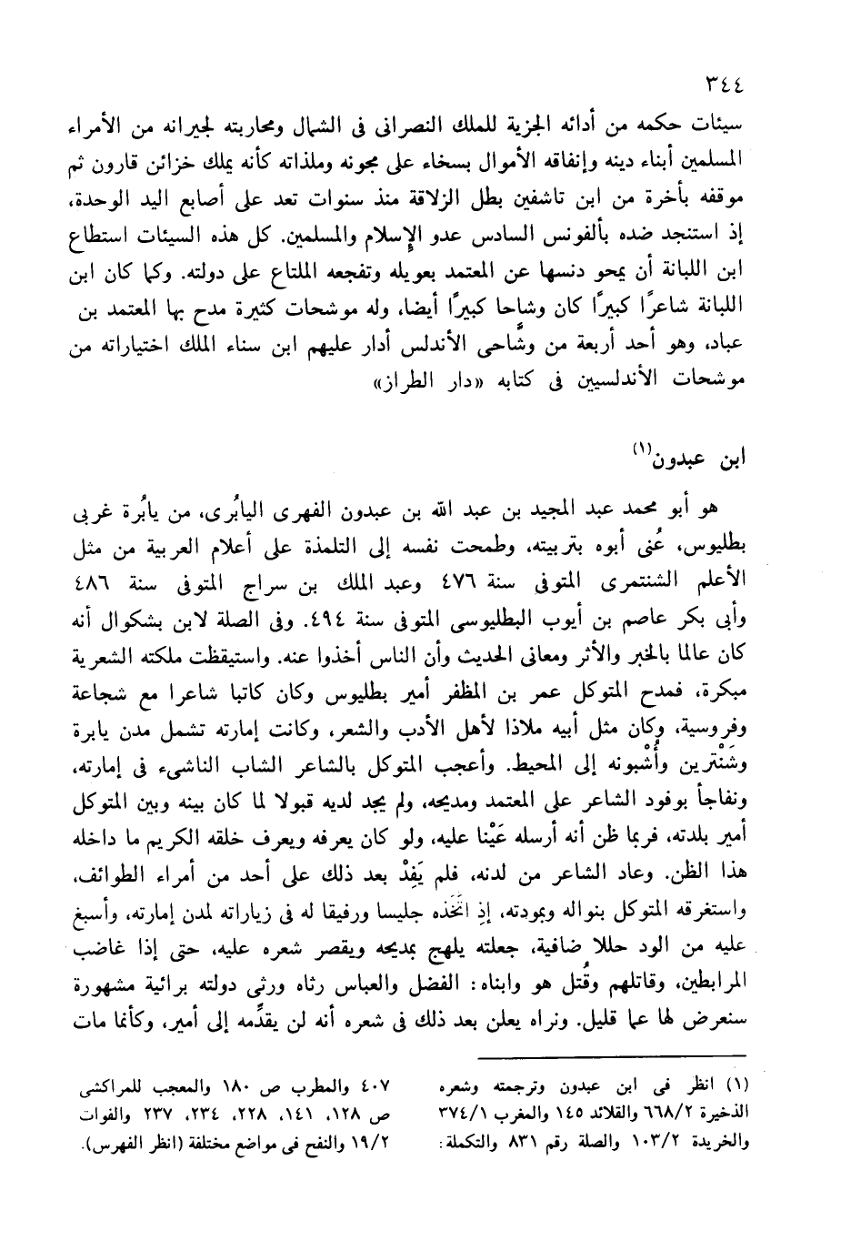 (¬1) انظر فى ابن عبدون وترجمته وشعره الذخيرة 2/ 668 والقلائد 145 والمغرب 1/ 374 والخريدة 2/ 103 والصلة رقم 831 والتكملة: 407 والمطرب ص 180 والمعجب للمراكشى ص 128، 141، 228، 234، 237 والفوات 2/ 19 والنفح فى مواضع مختلفة (انظر الفهرس).