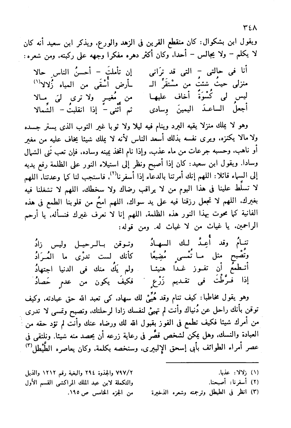 (¬3) انظر فى الطيطل وترجمته وشعره الذخيرة 2/ 797 والجذوة 294 والبغية رقم 1212 والذيل والتكملة لابن عبد الملك المراكشى القسم الأول من الجزء الخامس ص 195.