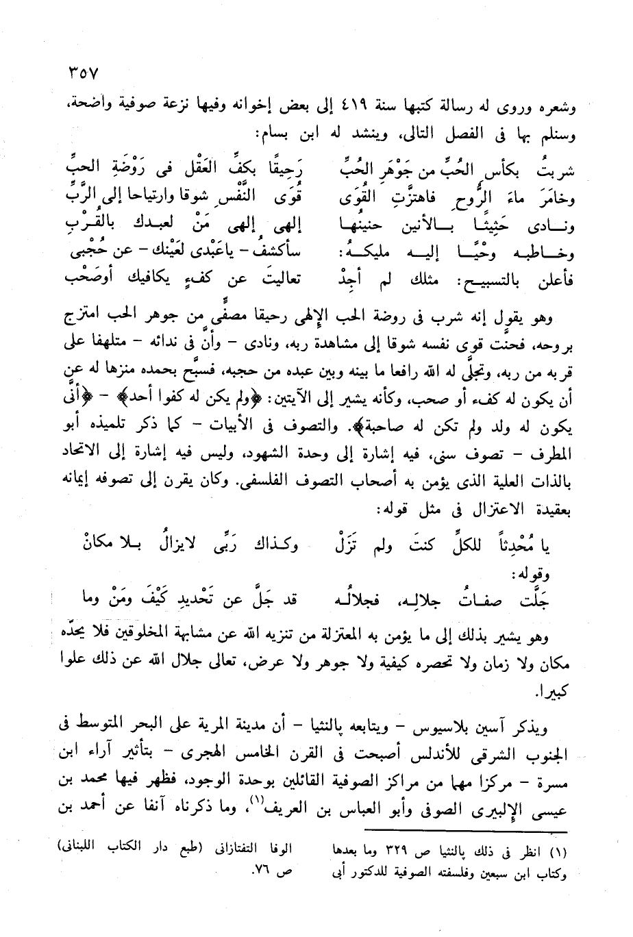(¬1) انظر فى ذلك بالنثيا ص 329 وما بعدها وكتاب ابن سبعين وفلسفته الصوفية للدكتور أبى الوفا التفتازانى طبع دار الكتاب اللبنانى) ص 76.