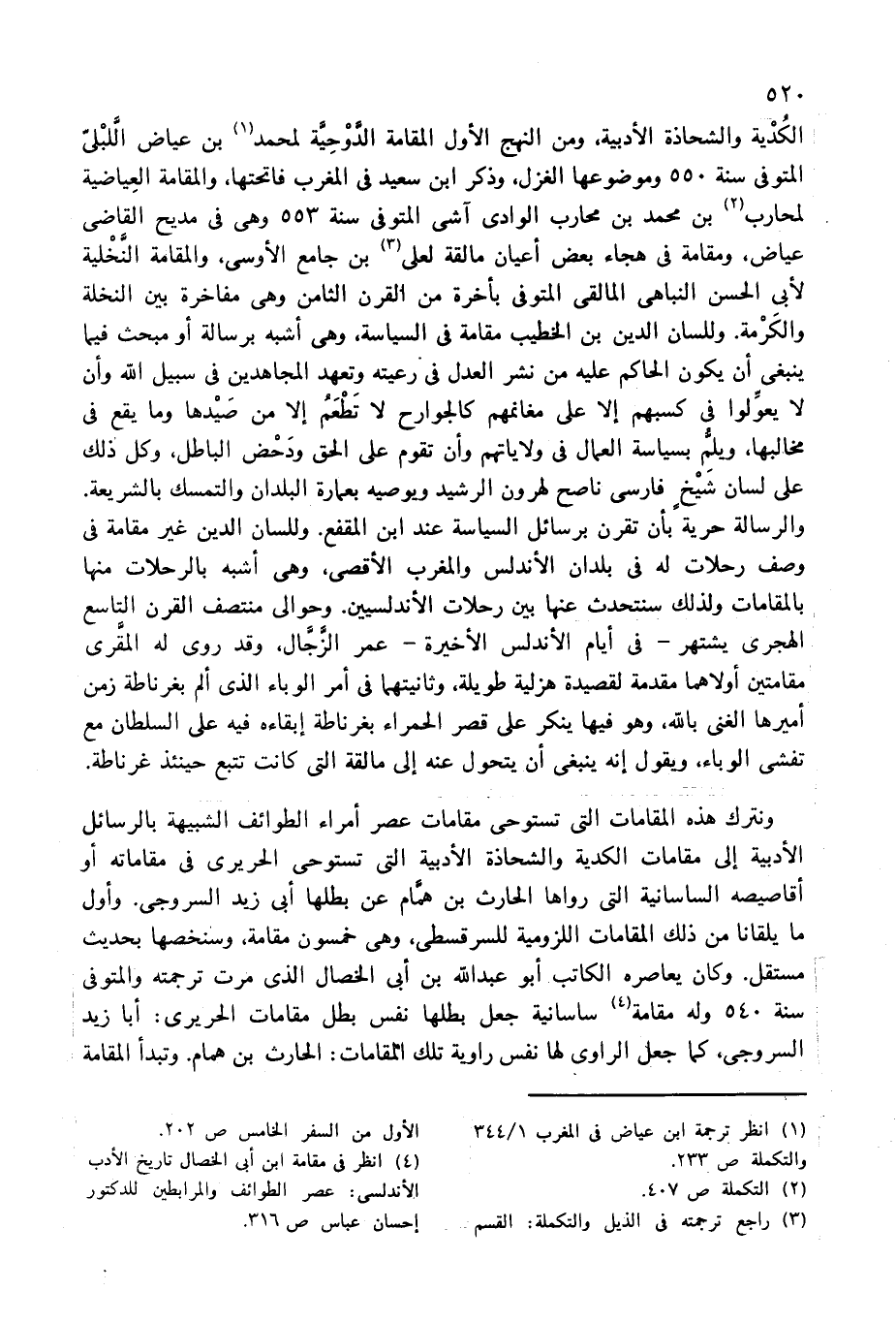 (¬4) انظر فى مقامة ابن أبى الخصال تاريخ الأدب الأندلسى: عصر الطوائف والمرابطين للدكتور إحسان عباس ص 316.