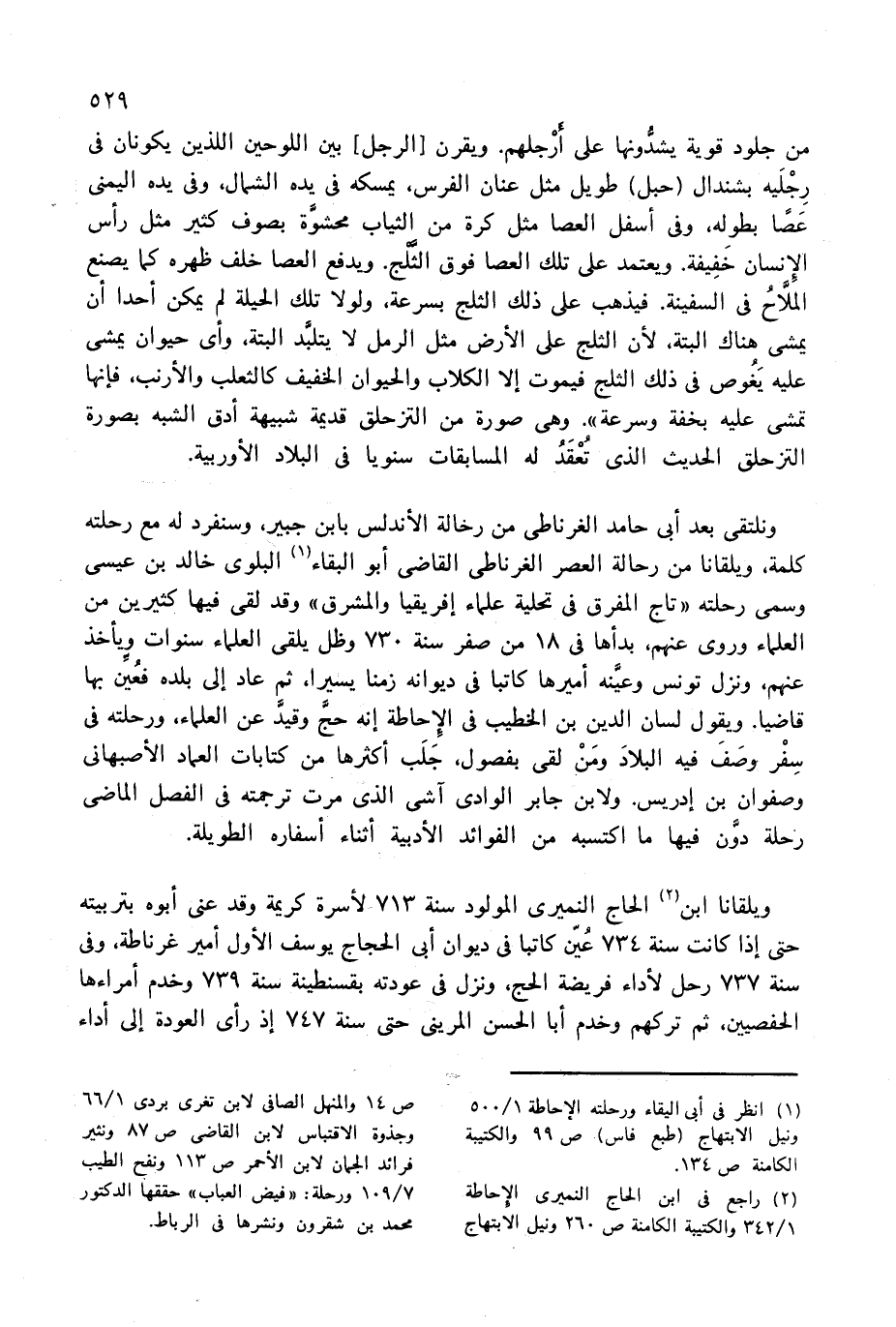 (¬2) راجع فى ابن الحاج النميرى الإحاطة 1/ 342 والكتيبة الكامنة ص 260 ونيل الابتهاج ص 14 والمنهل الصافى لابن تغرى بردى 1/ 66 وجذوة الاقتباس لابن القاضى ص 87 ونثير فرائد الجمان لابن الأحمر ص 113 ونفح الطيب 7/ 109 ورحلة: «فيض العباب» حققها الدكتور محمد بن شقرون ونشرها فى الرباط.
