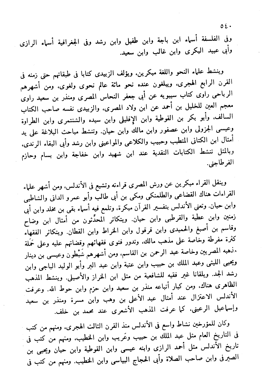 وفى الفلسفة أسماء ابن باجة وابن طفيل وابن رشد وفى الجغرافية أسماء الرازى وأبى عبيد البكرى وابن غالب وابن سعيد.