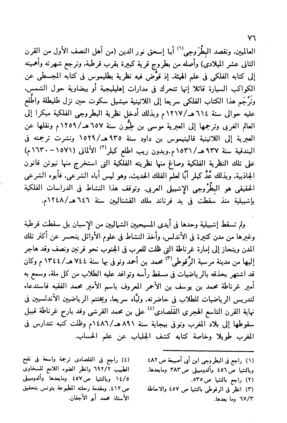 (¬1) راجع فى البطروجى ابن أبى أصيبعة ص 482 وبالنثيا ص 456 وألدومييلى ص 383 وما بعدها.